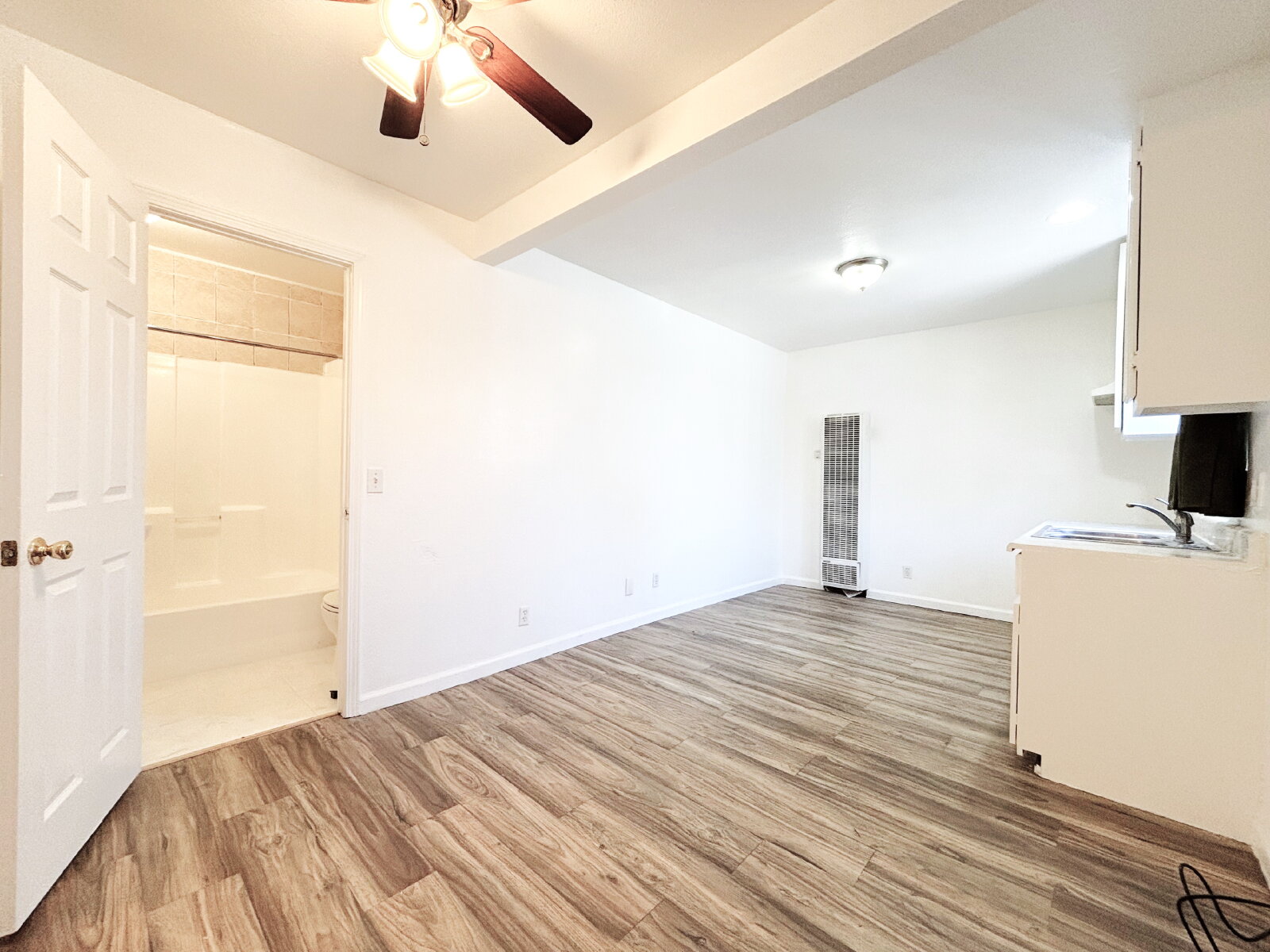 This charming 1-bedroom, 1-bath unit offers 500 sq ft of comfortable living space featuring a functional kitchen area with no appliances included, laminate and tile flooring throughout, ceiling fans for added comfort, a wall heater, 1 assigned parking space, landscaping included, All utilities includes!