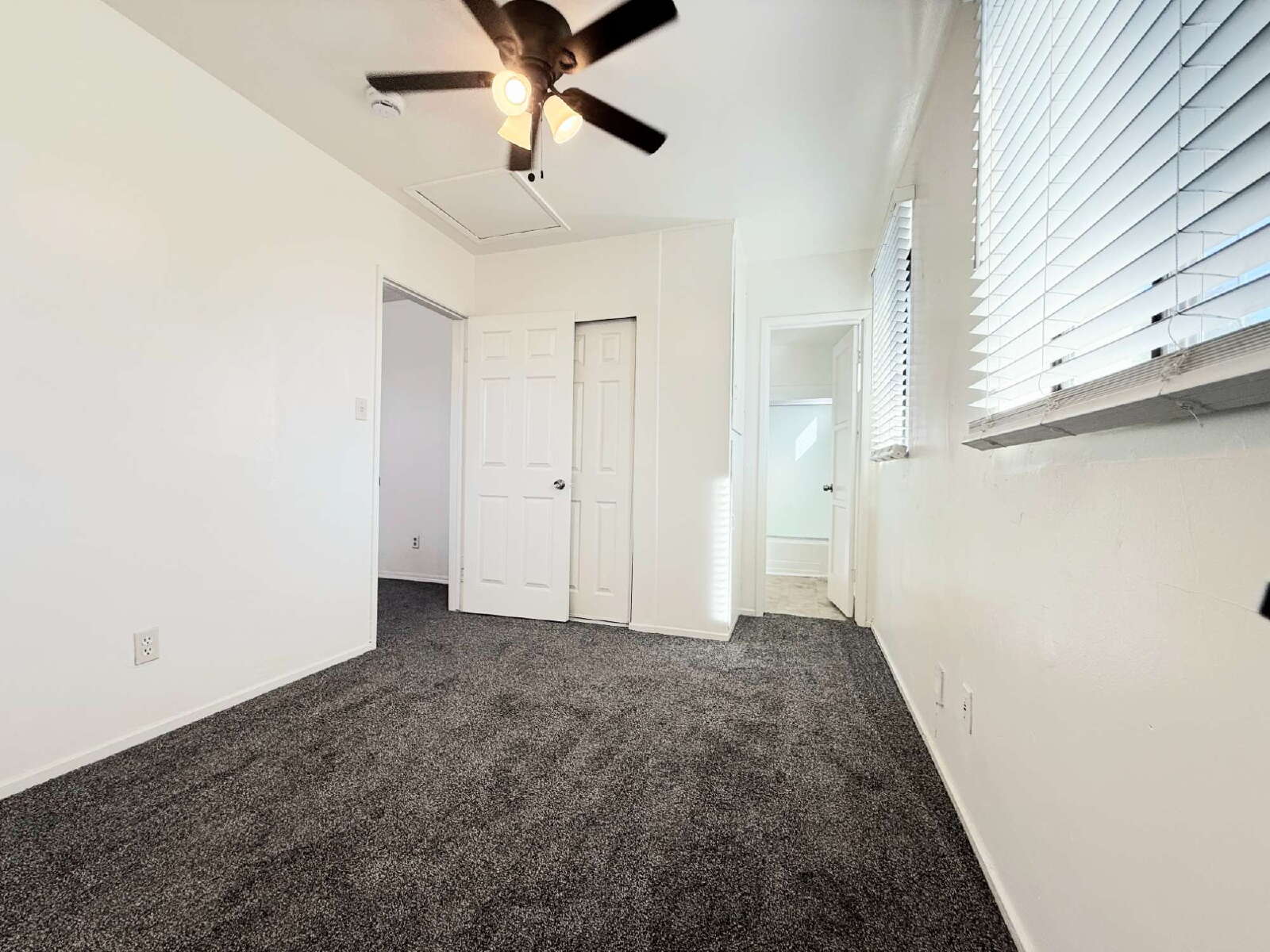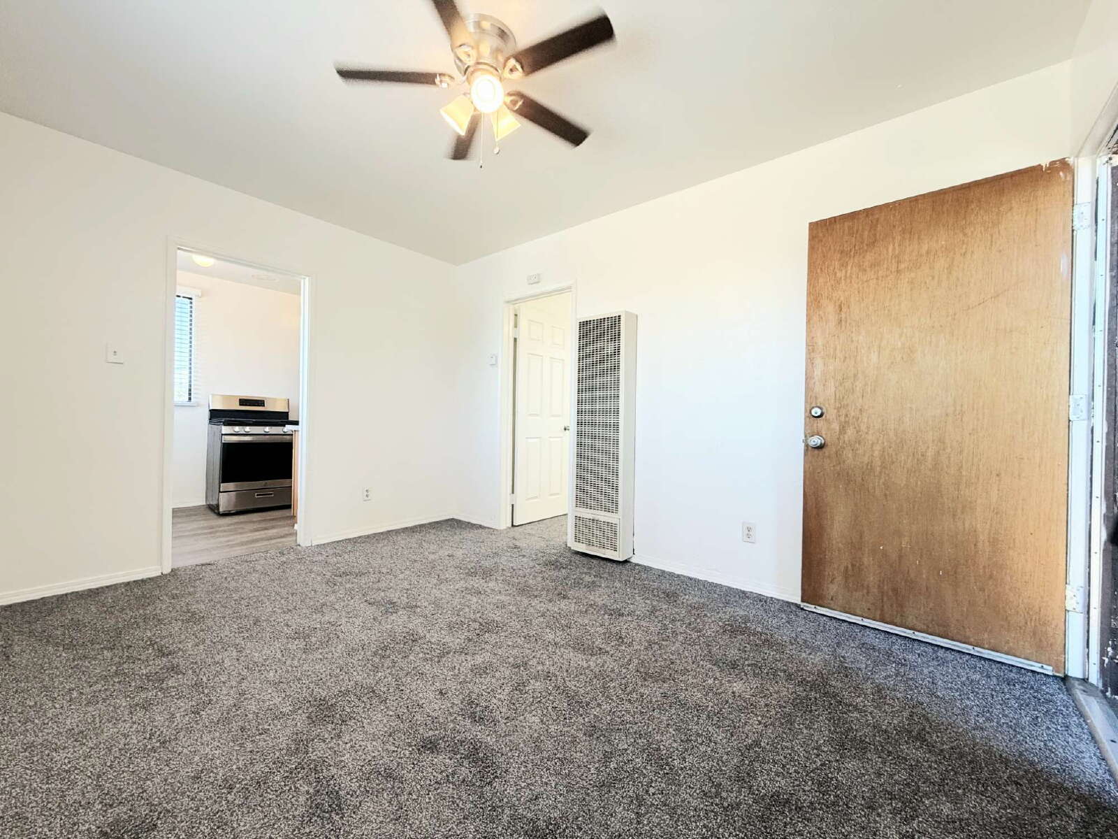 This inviting 1-bedroom, 1-bath unit with a bonus room spans approximately 641 sq ft and features a practical kitchen equipped with a refrigerator and range, carpet flooring throughout, ceiling fans in every room, a well-laid-out bedroom and bathroom, and a pleasant private patio, One assigned parking space.Water and trash are included. Tenant is responsible for all other utilities and services.