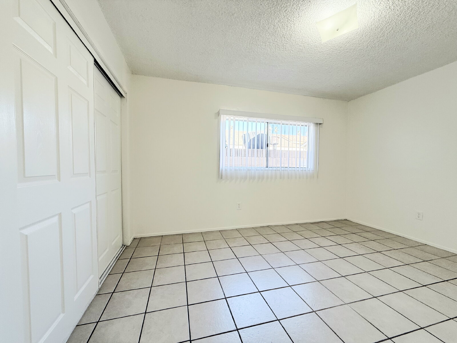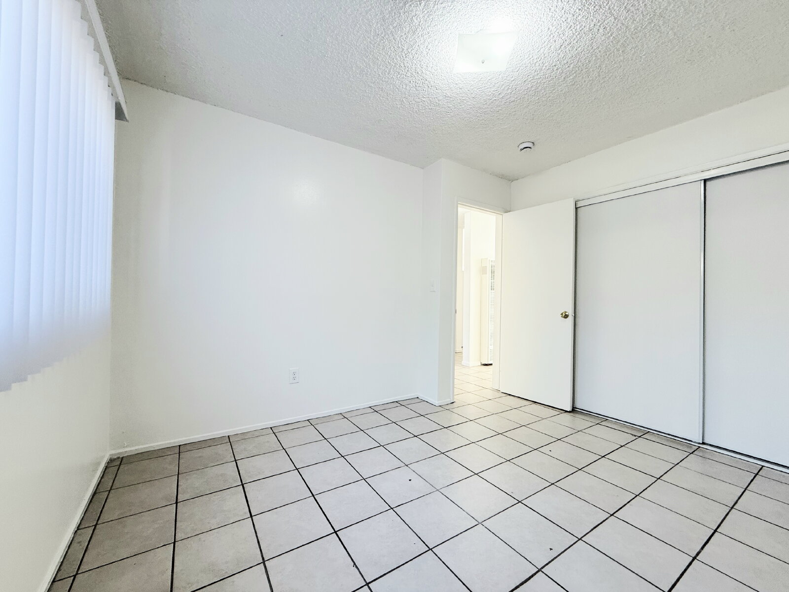 This charming unit offers a functional kitchen equipped with a range and refrigerator, tile flooring throughout, 2 bedrooms and 1 bathroom across approximately 800 sq ft, wall heater, and 1 parking space